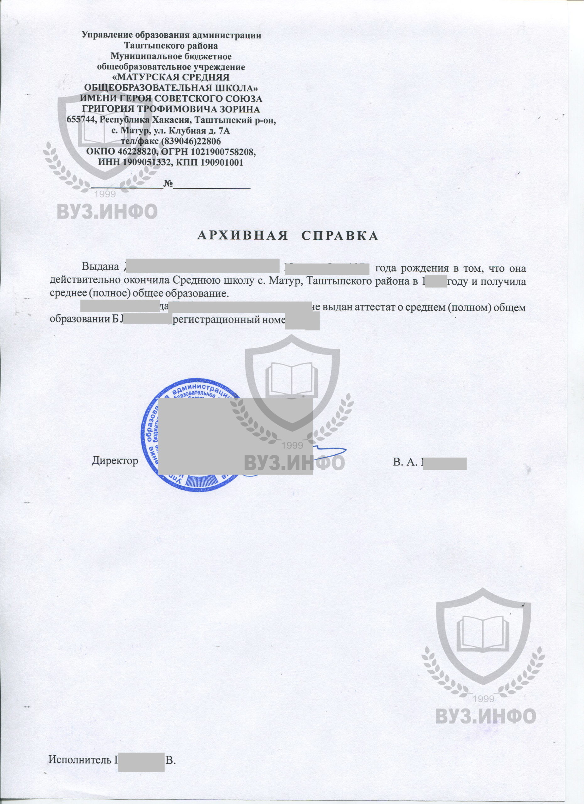 Архивная справка из ВУЗа