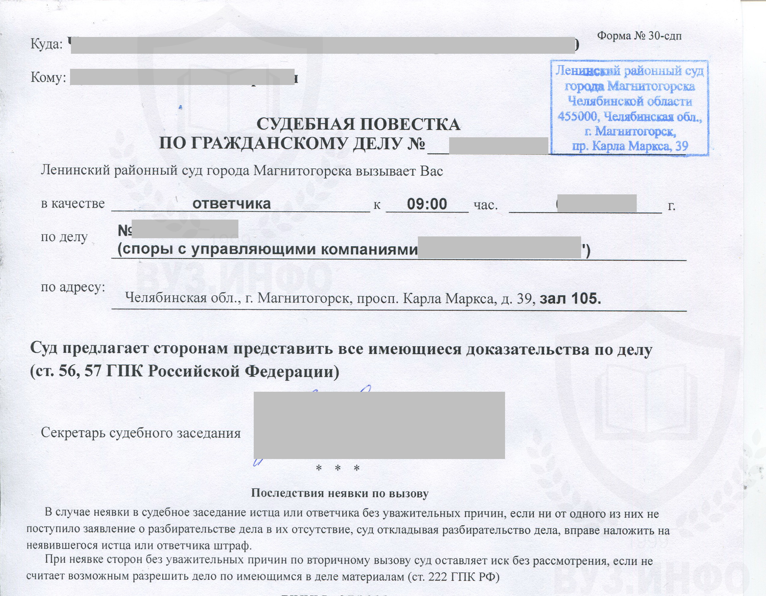 - Повестку в следственный комитет.