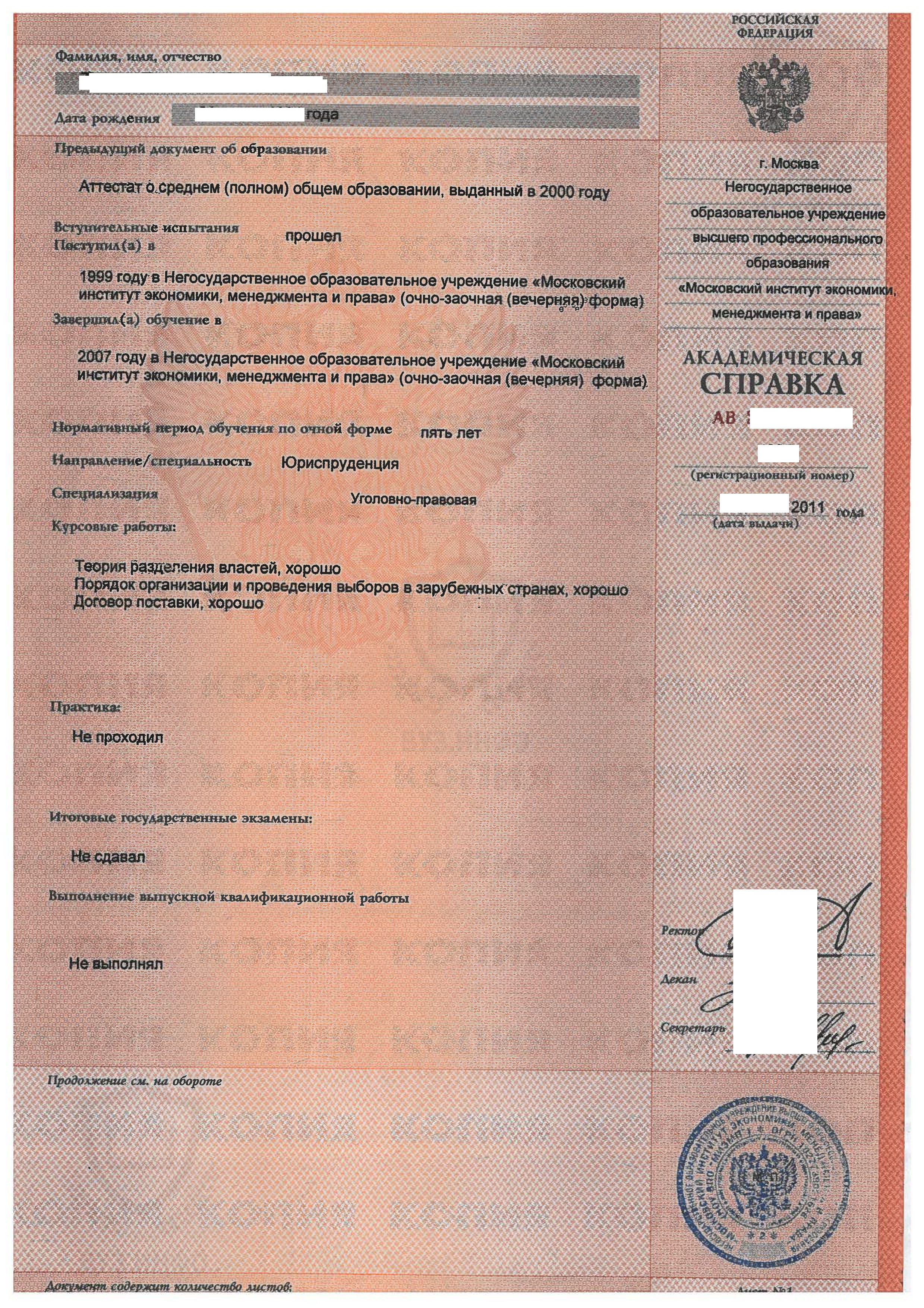 Покажу как выглядел бланк академической справки до 2011 года и как выглядит для примера справка об обучении (периоде обучения) от одного из престижнейших ВУЗов страны сегодня.