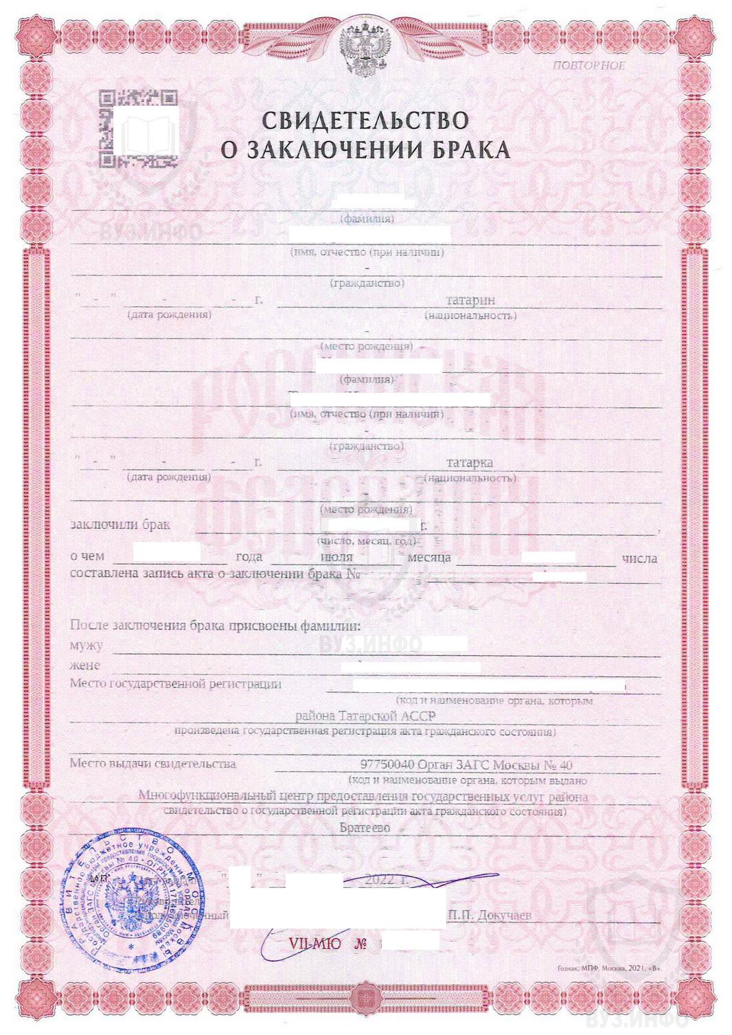 Свидетельство о государственной регистрации брака выдаётся в ЗАГСе. Иногда оно оказывается утерянным или требует изменения каких-либо данных. В этом случае можно просто купить свидетельство о браке на ВУЗ.ИНФО.